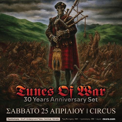 ΟΛΟ το επικό album των Γερμανών Grave Digger , θα παιχτεί για πρώτη φορά στη χώρα μας , από το πρώτο μέχρι το τελευταίο κομμάτι. To " Tunes of War " δε χρειάζεται ιδιαίτερες συστάσεις. Κυκλοφόρησε το 1996 , ειναι το 7ο κατα σειρά album τους και θεωρείται μέχρι και σήμερα η κορυφαία στιγμή του συγκροτήματος από όλους τους οπαδούς του group και όχι μόνο. Με κομμάτια όπως " The Dark of the Sun " , " Scotland United " , " The ballad of Mary " , " Killing Time" έως και το σήμα κατατεθέν τους " Rebellion ( The clans are Marching) " είναι σίγουρο πως δε θα μείνει ΤΙΠΟΤΑ όρθιο! Ποιος ξεχνάει άλλωστε τι είχε γίνει στις 2 πρώτες ιστορικές συναυλίες στη χώρα μας , τον Μάρτιο, του 97 σε Θεσσαλονίκη και Αθήνα? Το Σάββατο 25 Απριλίου στο Circus, θα γίνει αναβίωση των ιστορικών συναυλιών στη χώρα μας και προβλέπεται πανικός!