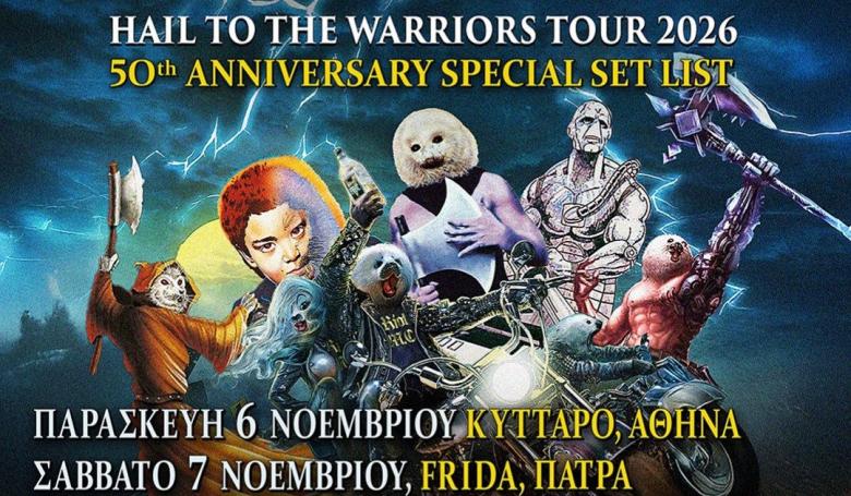 Οι Riot V, ένα από τα πιο ιστορικά ονόματα του αμερικανικού heavy metal, επιστρέφουν στην Ελλάδα στο πλαίσιο της "Hail To The Warriors Tour 2026", γιορτάζοντας τα 50 χρόνια ζωής του συγκροτήματος με ένα μοναδικό επετειακό setlist που καλύπτει όλη τη διαδρομή τους. Οι Riot V επισκέπτονται Αθήνα, Πάτρα, Λάρισα, Θεσσαλονίκη και Λευκωσία, φέρνοντας μαζί τους τα σπουδαιότερα τραγούδια μιας πορείας που επηρέασε το heavy metal, όσο λίγοι.