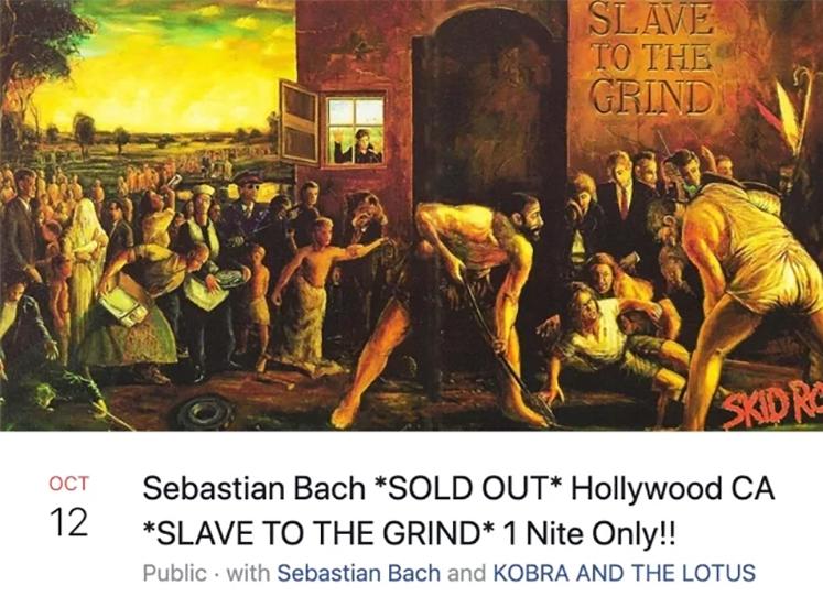 Στις 12 Οκτωβρίου ο Sebastian Bach μαζί με τους SKID ROW έπαιξαν ζωντανά ολόκληρο το “Slave To The Grind” στο θρυλικό Whiskey A Go Go στο Hollywood της Καλιφόρνια.